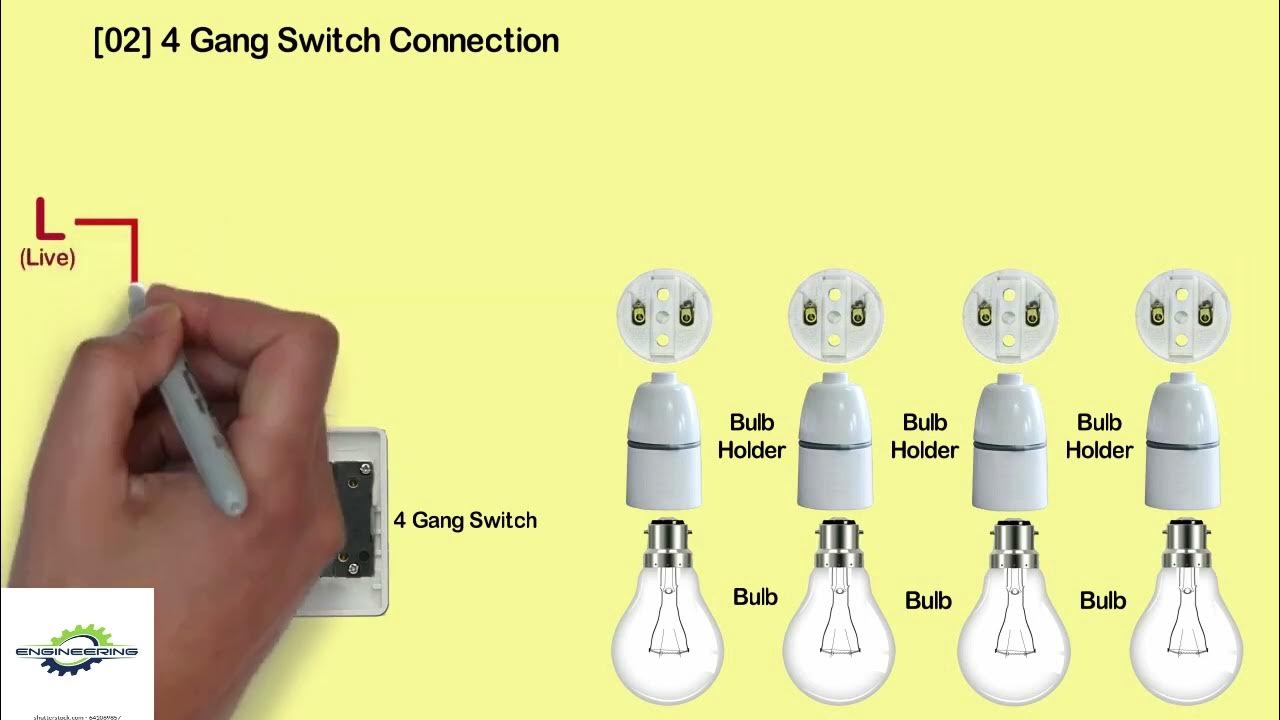 3 Gang & 4 Gang Switch Connection _ How to Wire Three Gang & Four Gang Light Switches