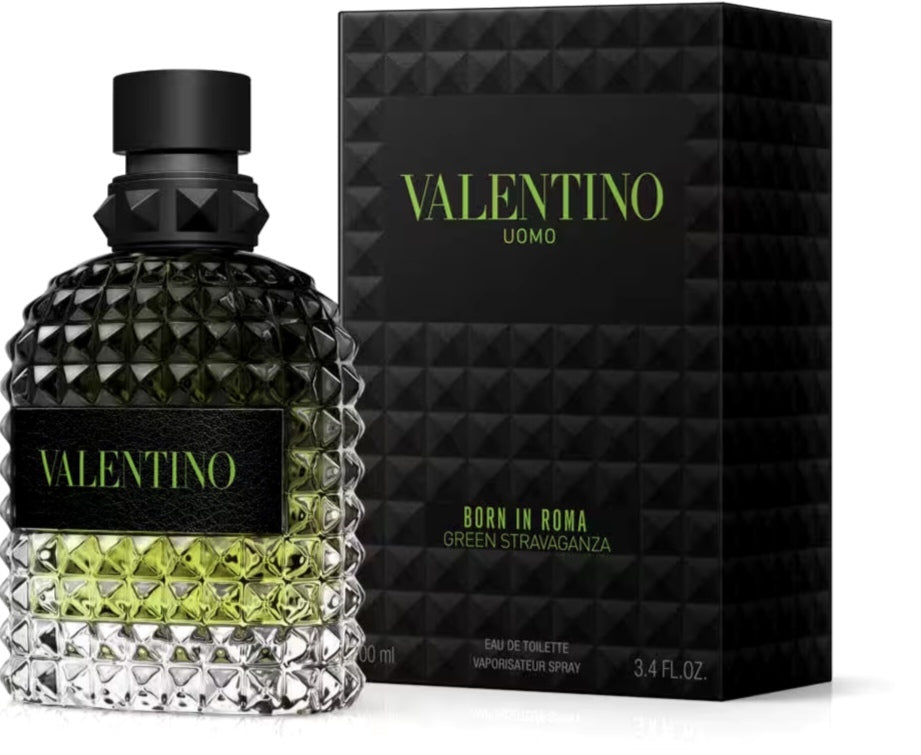 Valentino Born In Roma Uomo Green Stravaganza Eau de Toilette Spray . 50ML £59.99. 100ML £90.00. 50ML £59.99 each Save £7.01 - +. Born in Roma Green Stravaganza is a fougere ambery fragrance, revealing its magnetic aroma through the freshness of Calabrian bergamot heart, the pure energy surge of coffee accord, and the warmth of Vetiver.