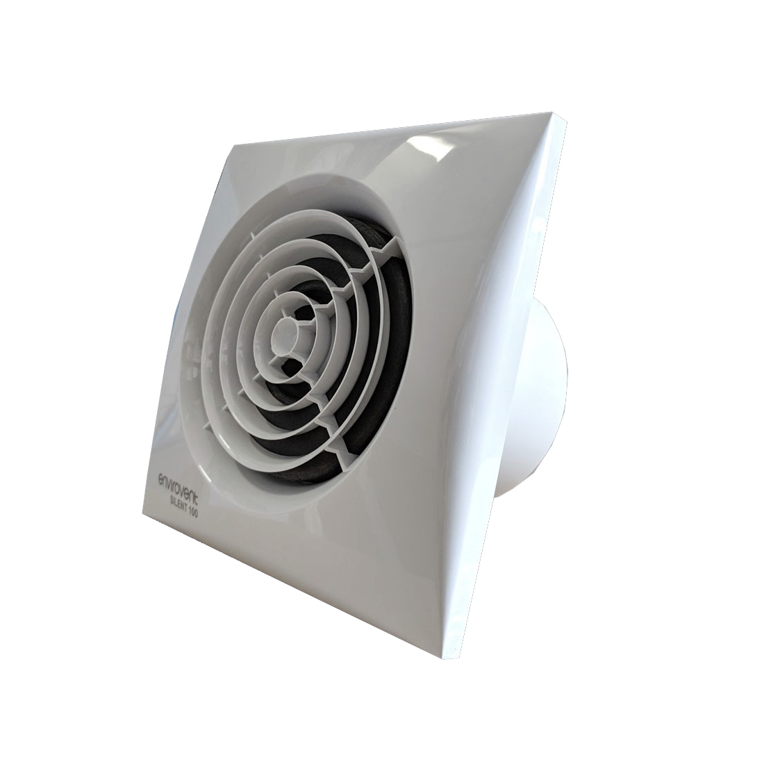 Envirovent 100mm White Axial Silent Extractor Fan with Timer - SIL100T. The Silent 100 is a powerful 100mm axial bathroom exhaust fan for home wall or ceiling installation, designed to solve the ventilation problem in toilets and bathrooms. Silent 100 fans have an adjustable run-on timer.