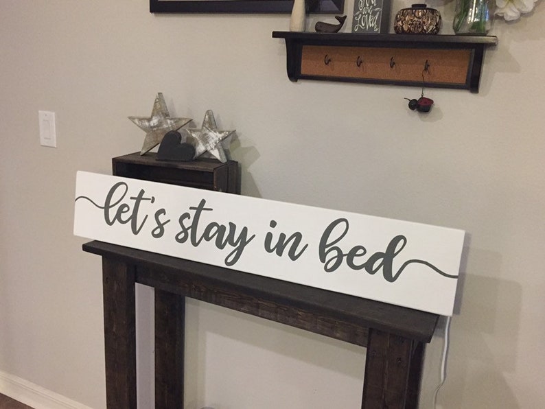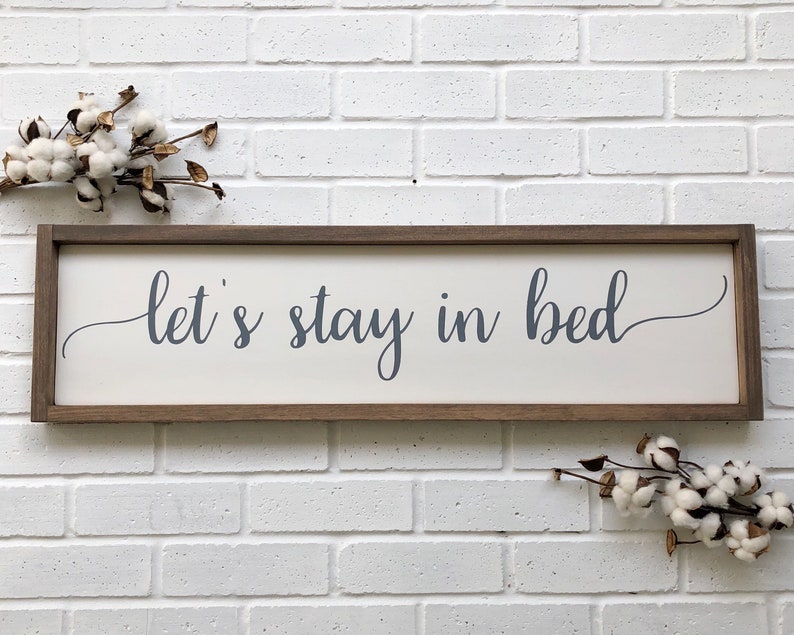 Lets Stay in Bed Bedroom Wall Decor, Wood Wall Sign, Bedroom Decor, Wood Wall Art, Above Bed Decor, Wood Wall Decoration, Lets Stay in Bed. (3.4k) £52.93. £88.22 (40% off) FREE UK delivery. Let's Stay in Bed Print. Bedroom Sign. Let's Stay in Bed Wall Art. Over The Bed Quote.