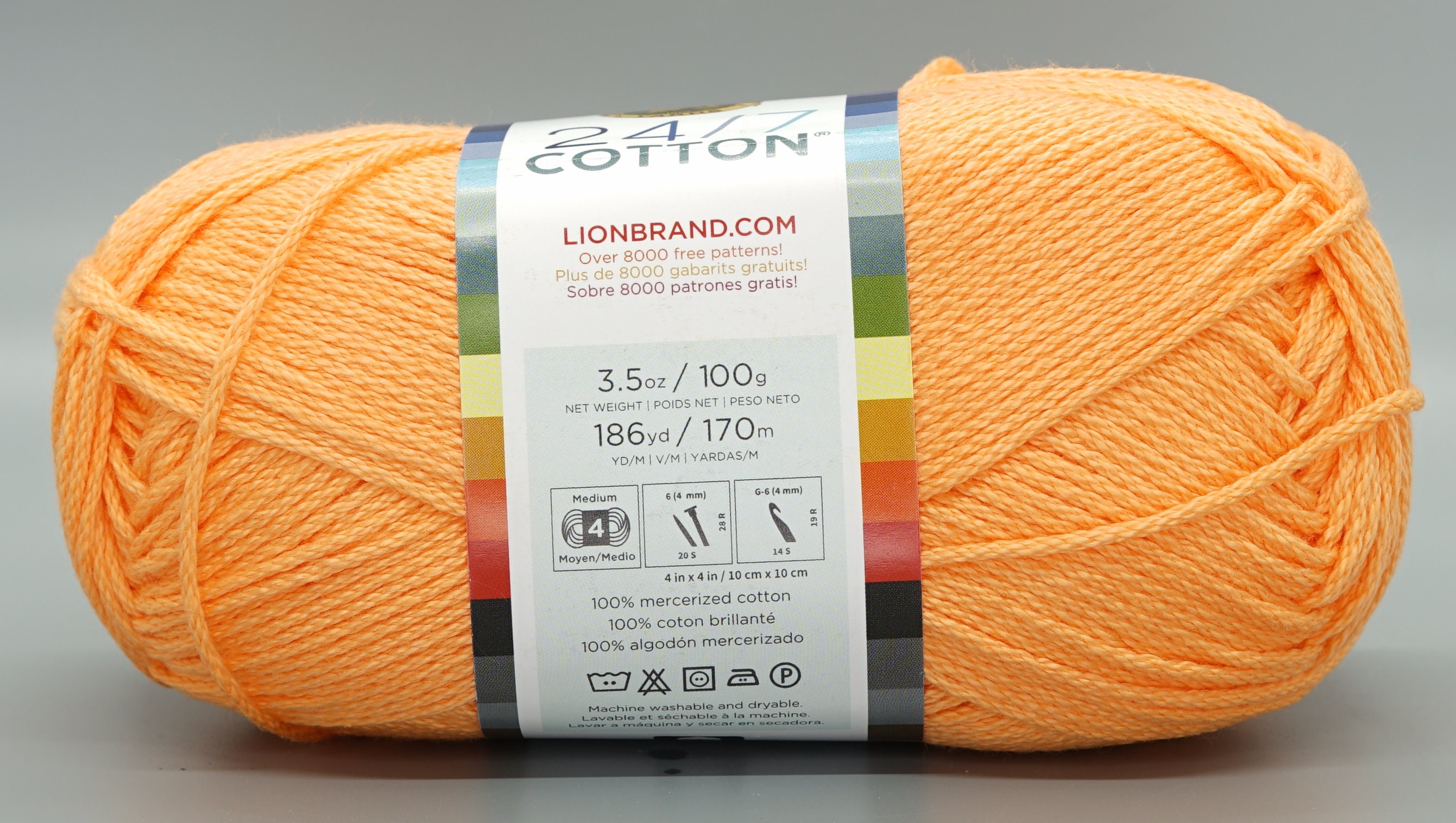 Lion Brand Yarn Company 761-132 24/7 Cotton Yarn, Creamsicle, One Size. 9,661. £649 (£0.04/meter) Save more with Subscribe & Save. Save 5% on any 4 qualifying items. FREE delivery Thu, 14 Sept on your first eligible order to UK or Ireland. Or fastest delivery Tomorrow, 12 Sept.