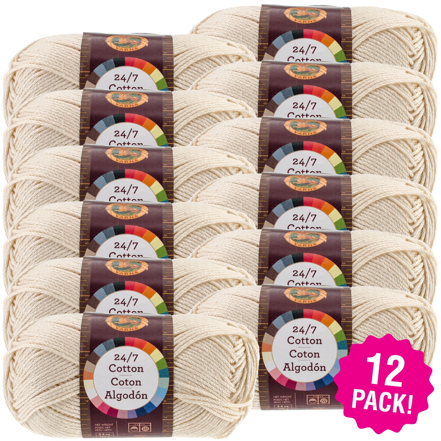 Lion Brand 24/7 Cotton Yarn Ecru, Multipack of 12