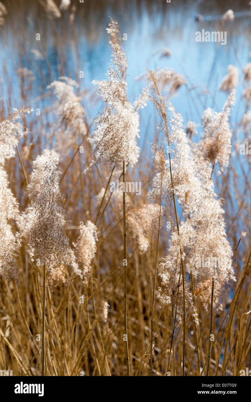 Common bulrushes (Typha latifolia) growing at Middlesex Filter Beds Nature Reserve, Hackney