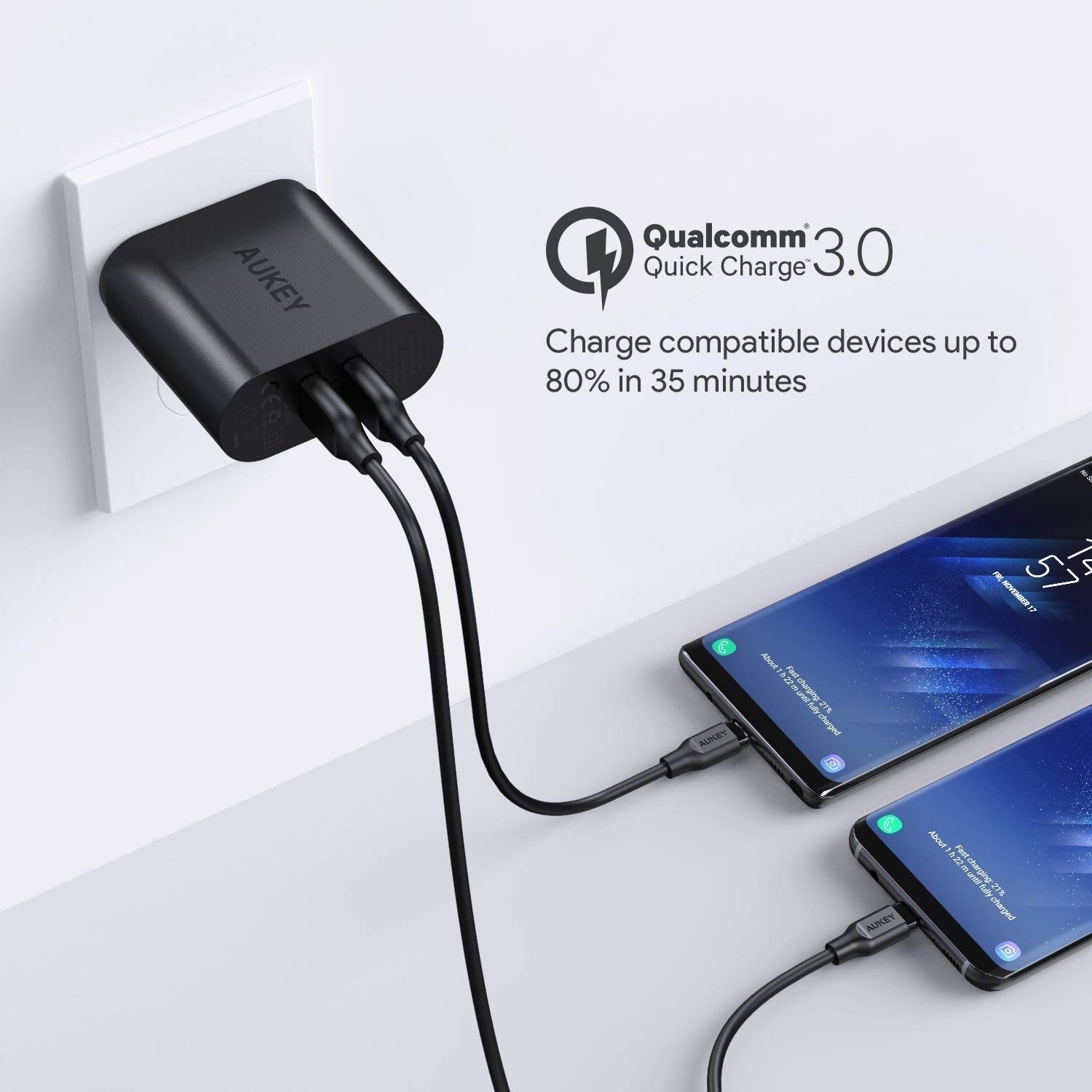 AUKEY USB Wall Charger with Quick Charge 3.0 & Dual Ports for Samsung Galaxy S8 / S8+ / Note8